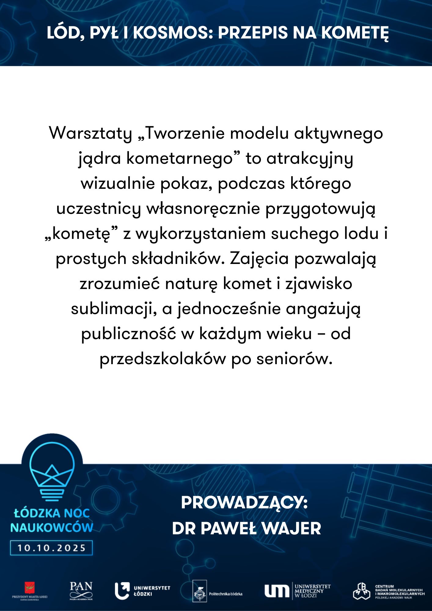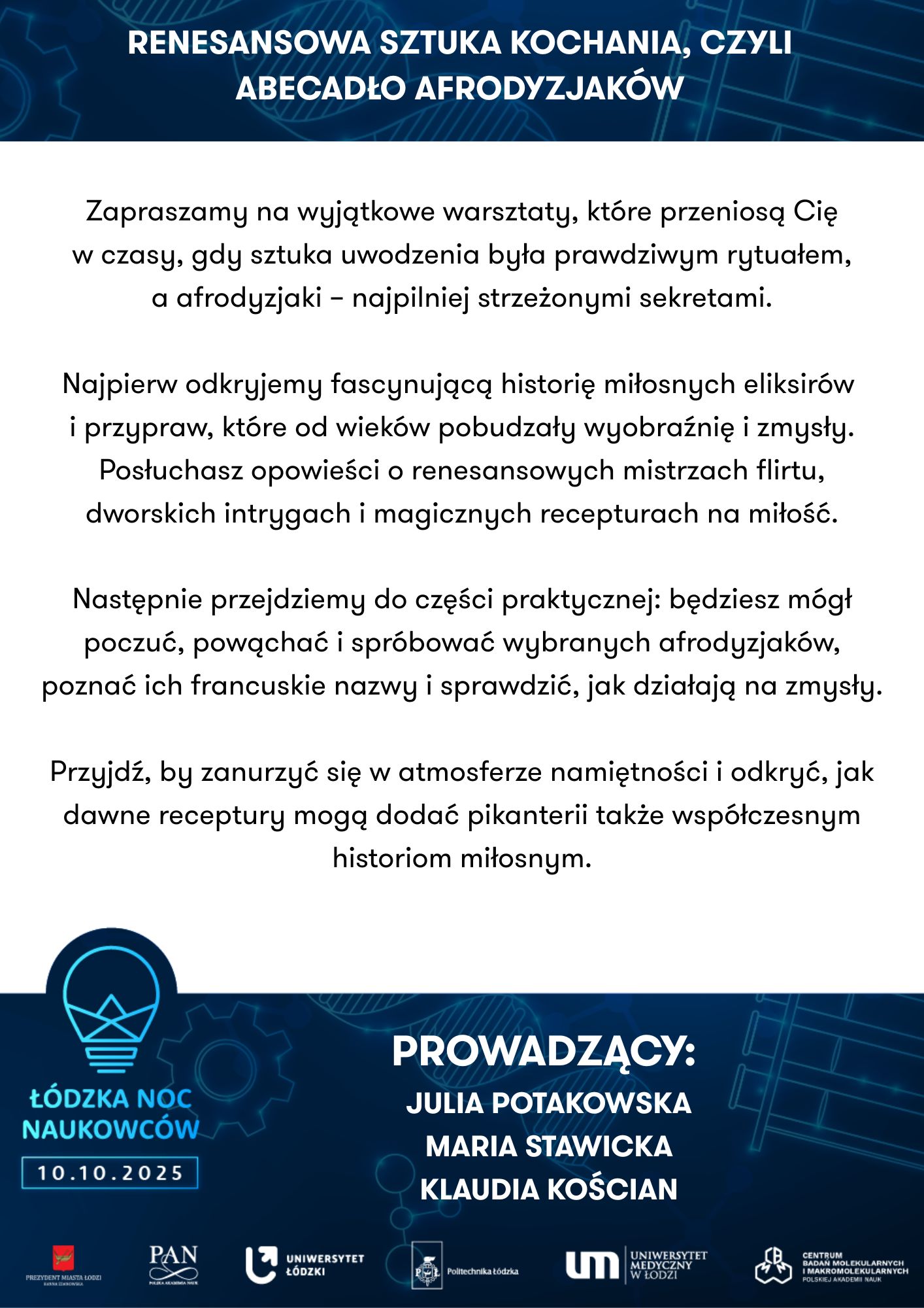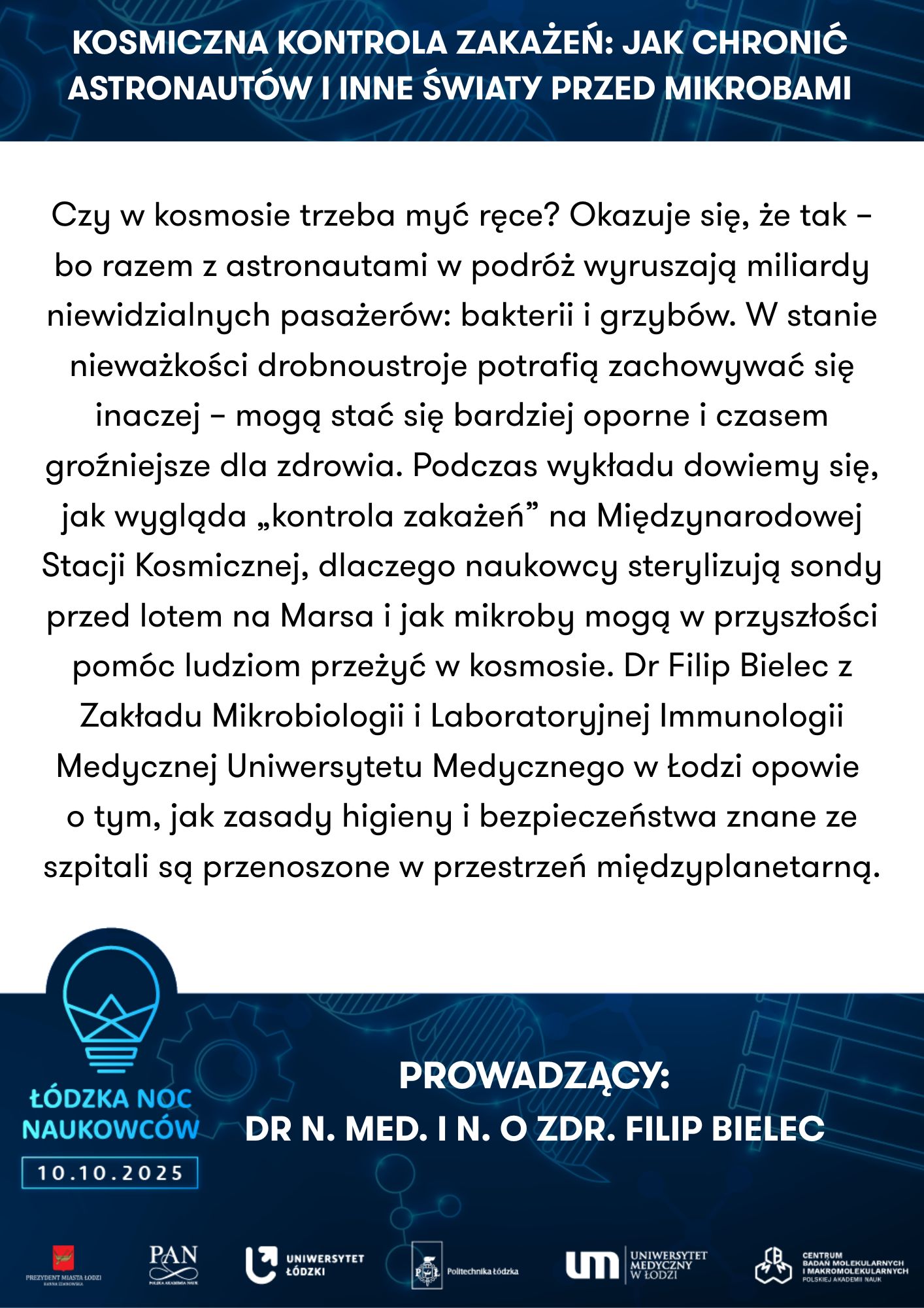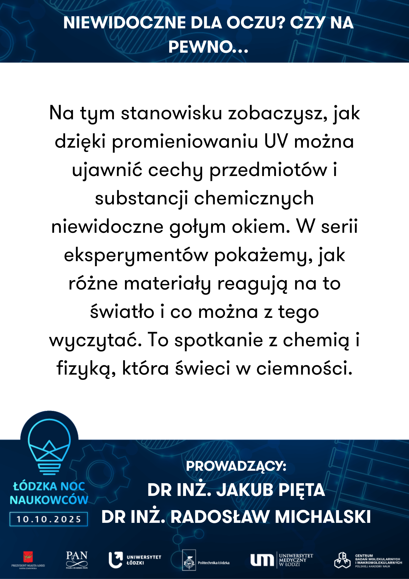 To nie tylko wieczór pełen wrażeń, ale też doskonała okazja do bezpośrednich rozmów z naukowcami i naukowczyniami reprezentującymi: