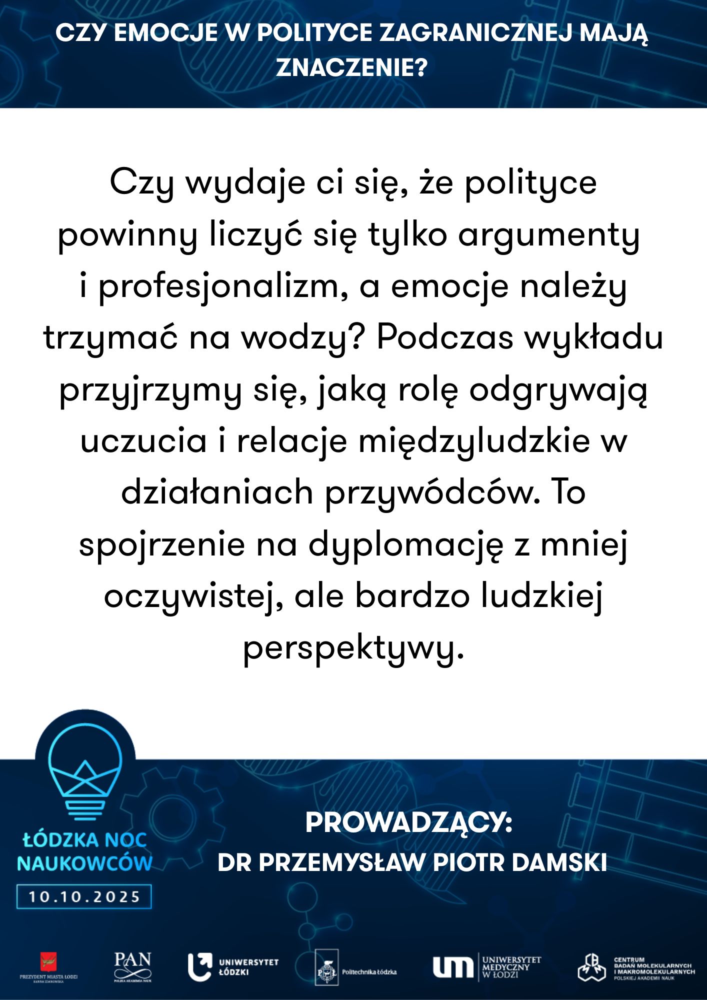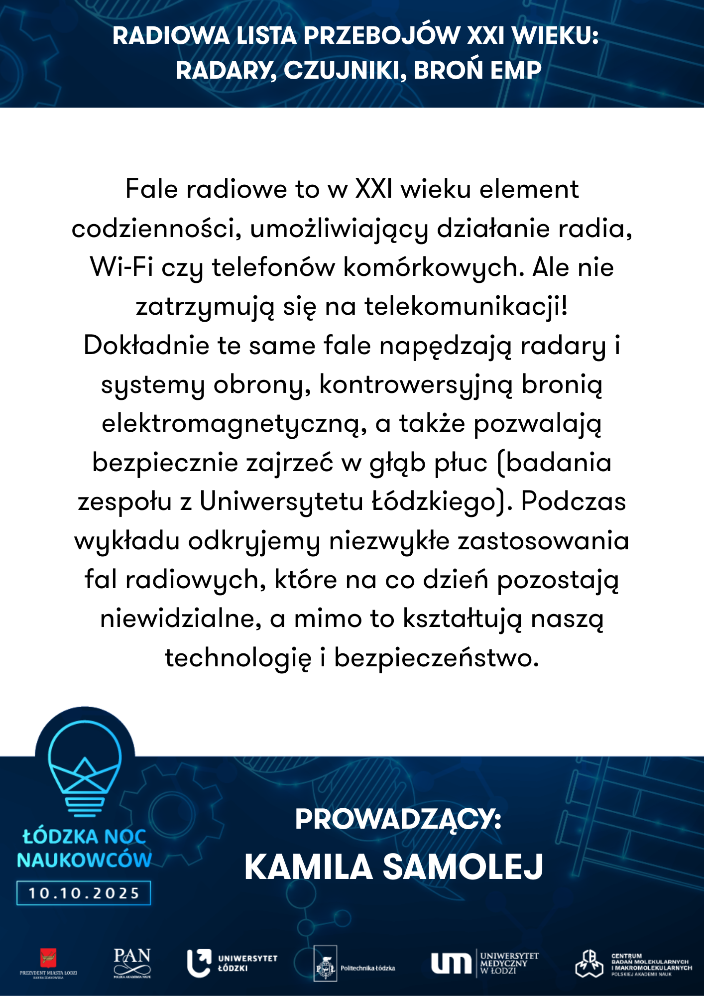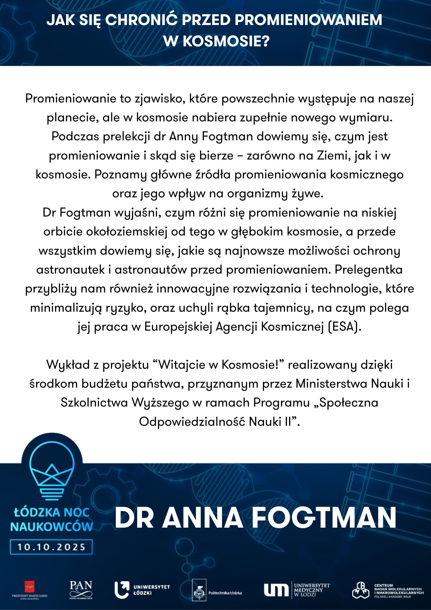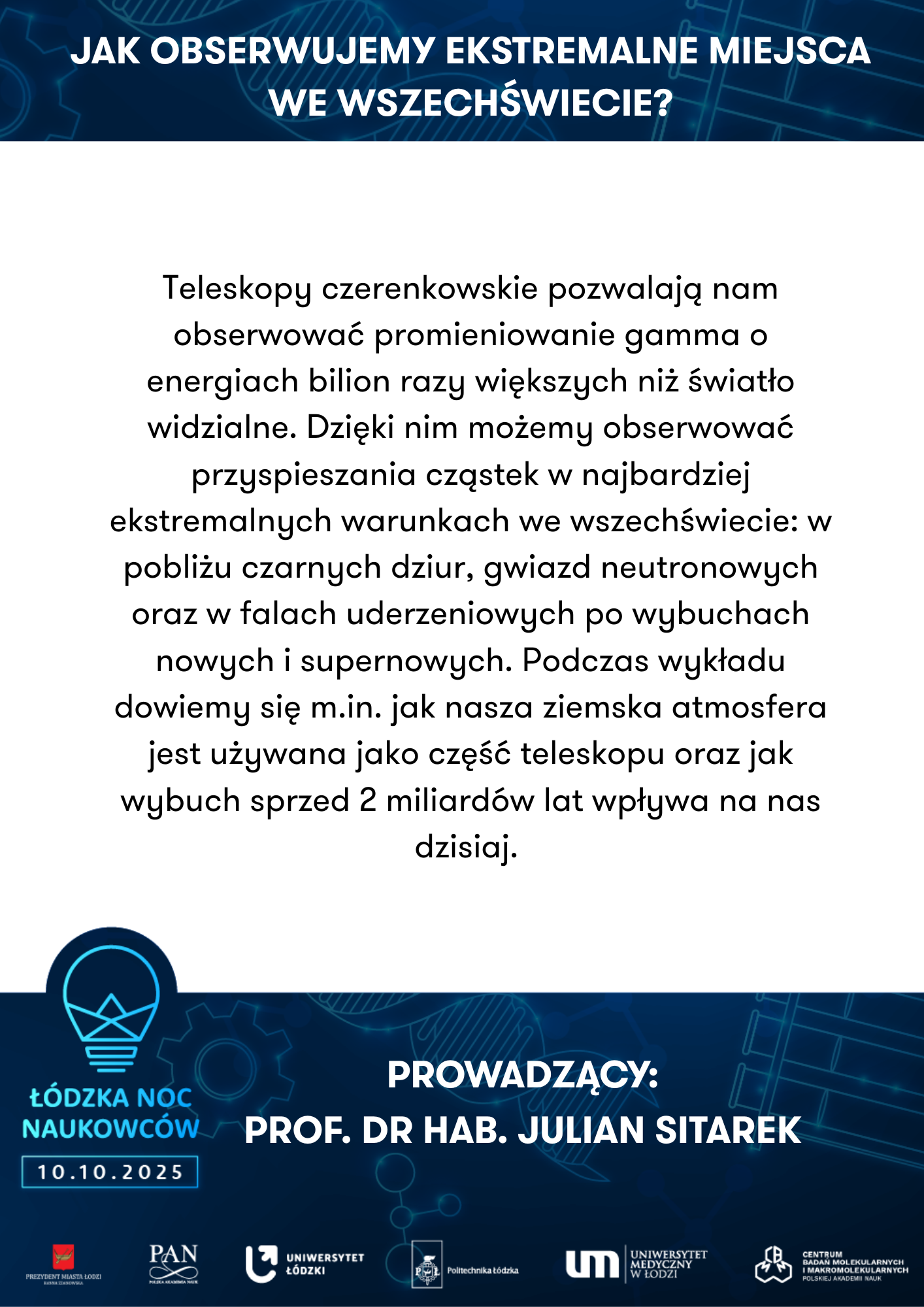 To nie tylko wieczór pełen wrażeń, ale też doskonała okazja do bezpośrednich rozmów z naukowcami i naukowczyniami reprezentującymi: