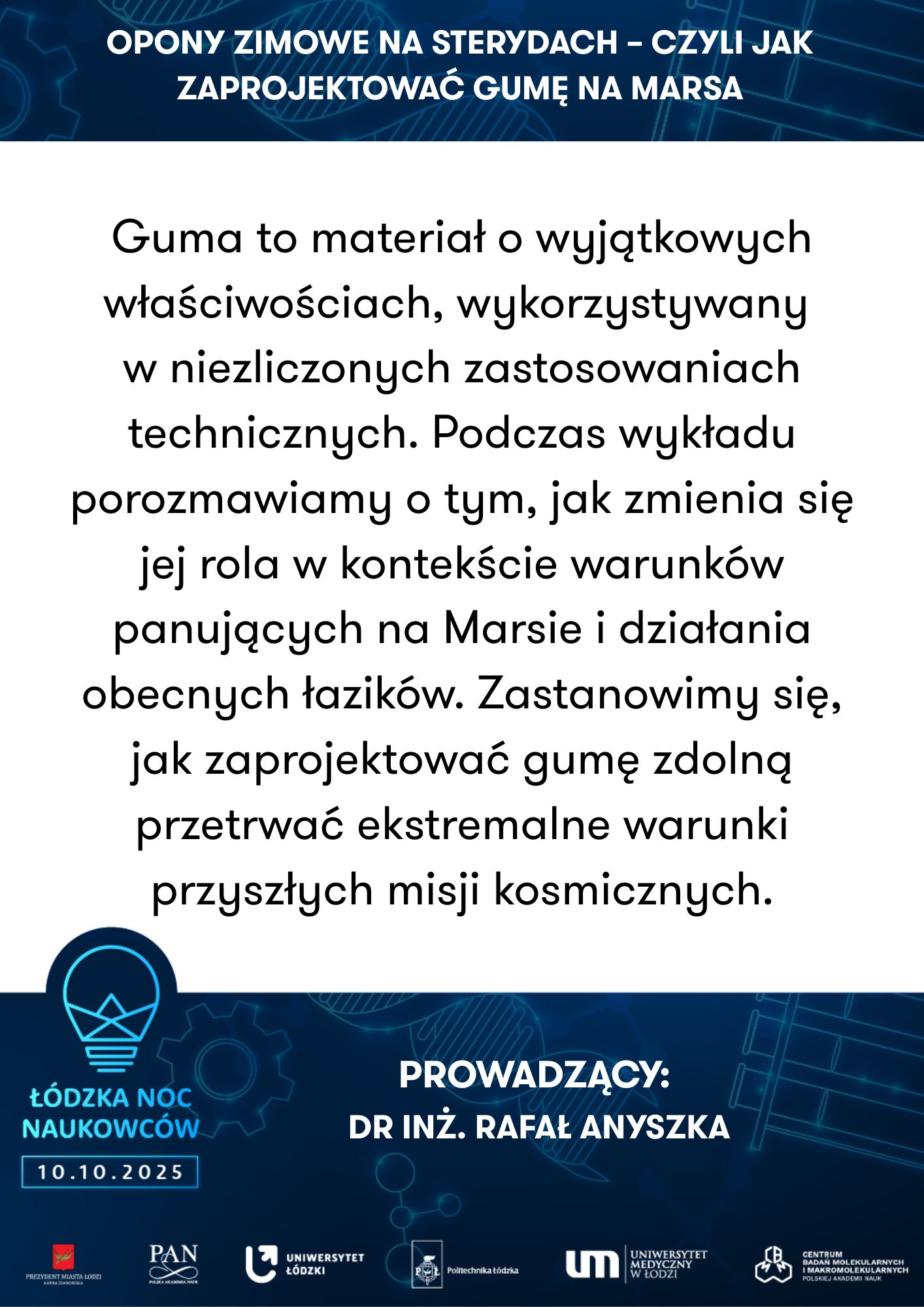 Uniwersytet Łódzki, Laboratorium Innowacji, Wydział Zarządzania | Laboratorium Innowacji UŁ – uczniowie mają głos w nauce! | Politechnika Łódzka, Wydział Chemiczny, Instytut Technologii Polimerów i Barwników | Opony zimowe na sterydach – czyli jak zaprojektować gumę na Marsa | ||