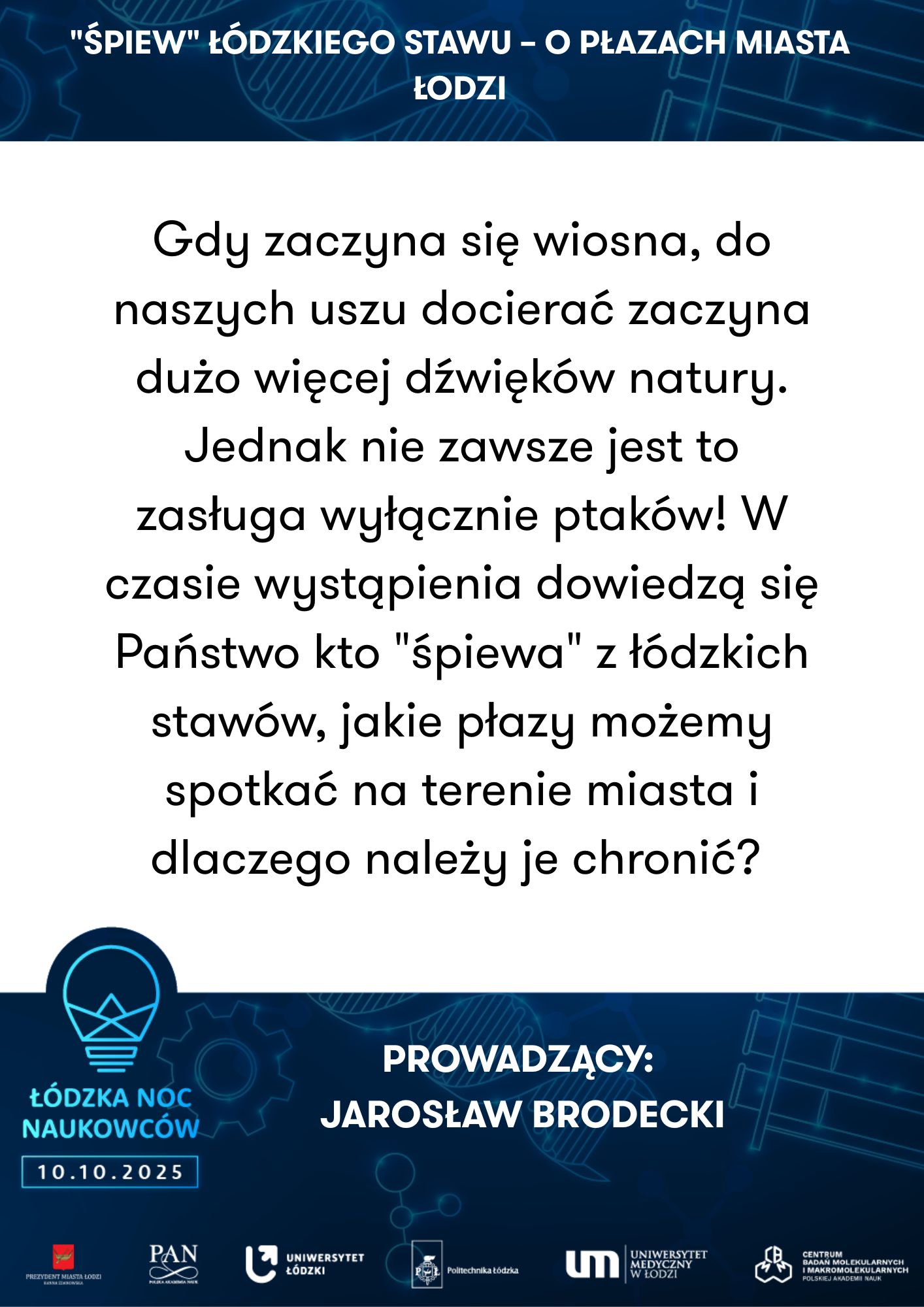 Uniwersytet Łódzki, Studenckie Koło Naukowe Zoologii Bezkręgowców | Co brzyczy Ci nad uchem - łódzkie komary! | Politechnika Łódzka, Wydział Fizyki i Informatyki Stosowanej | Kosmiczne działania nie tylko w kosmosie | ||