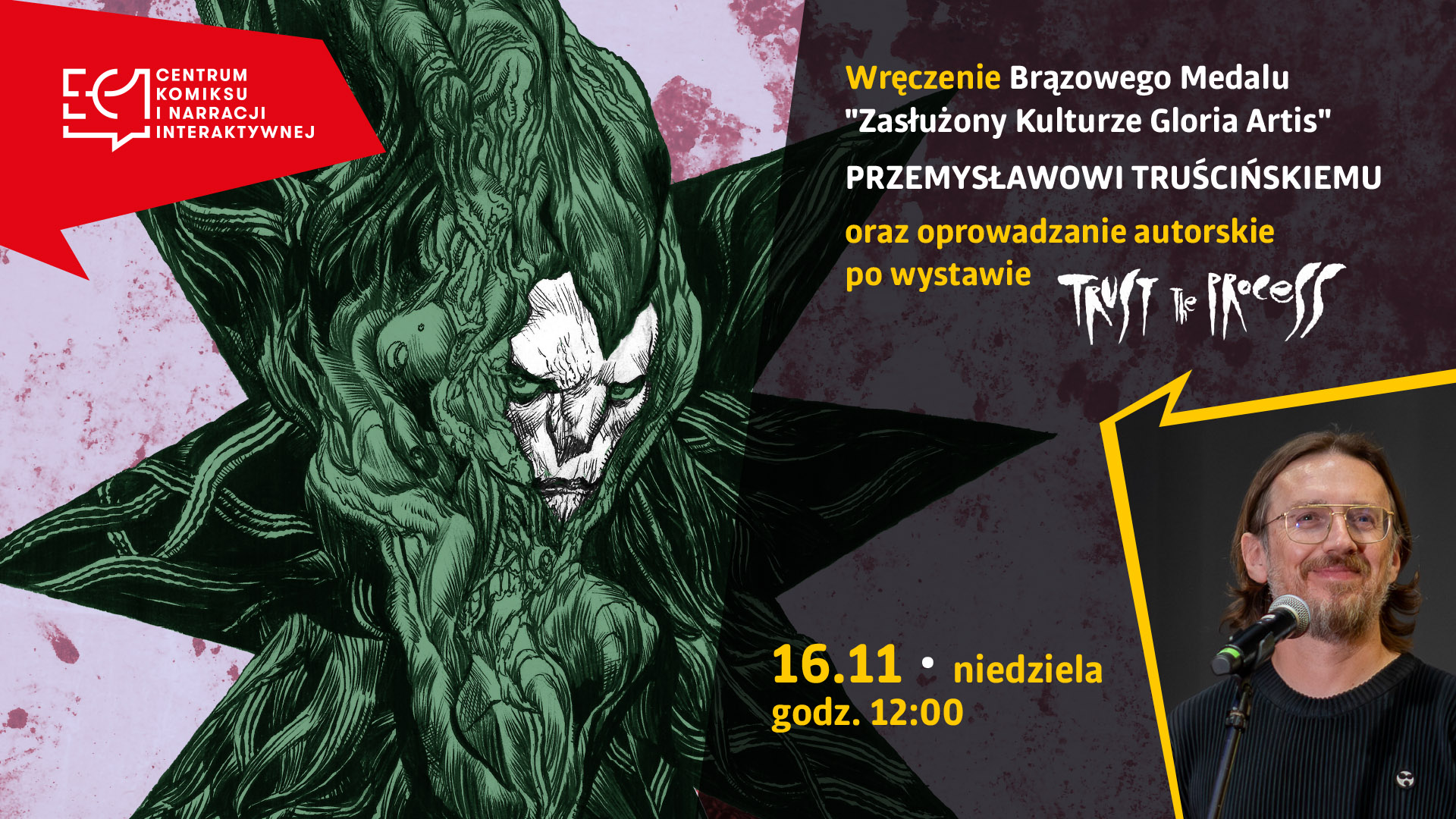Centrum Komiksu i Narracji Interaktywnej EC1 zaprasza 16 listopada 2025 roku na drugie spotkanie z cyklu wydarzeń towarzyszących wystawie „TRUST the process”.