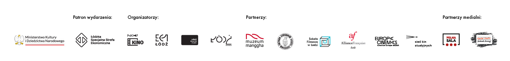 Partnerzy: Muzeum Sztuki i Techniki Japońskiej Manggha, Wydawnictwo Universitas, Szkoła Filmowa w Łodzi, Alliance Française Łódź