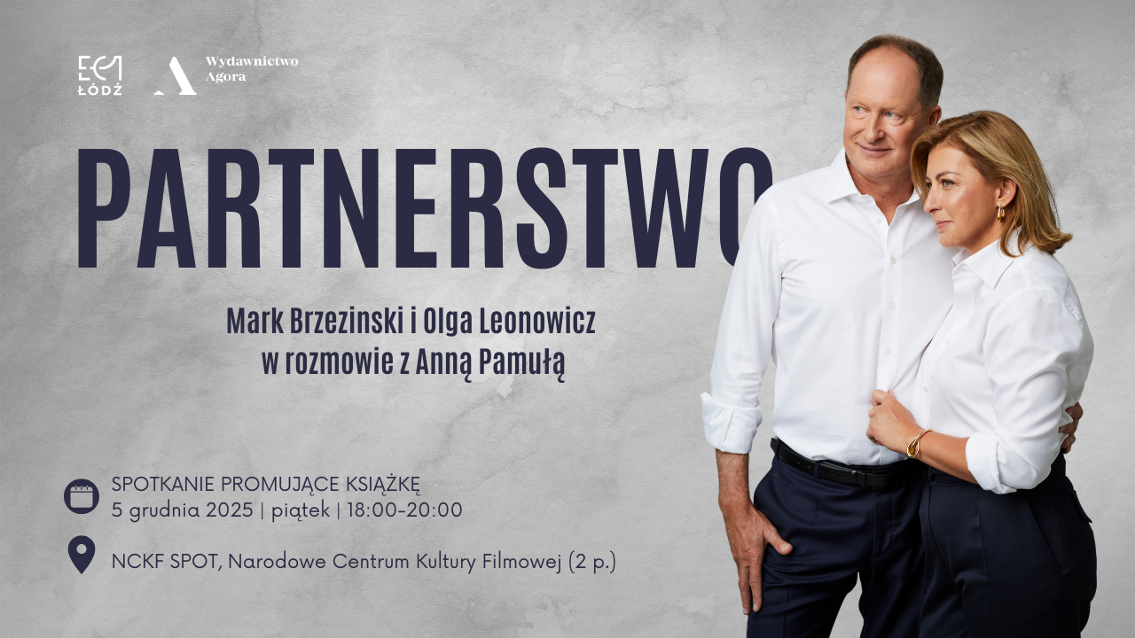 EC1 Łódź – Miasto Kultury zaprasza na wyjątkowe spotkanie promujące najnowszą pozycję literacką autorstwa Anny Pamuły. Bohaterami książki „Partnerstwo” są Mark Brzezinski, były ambasador USA w Polsce, oraz Olga Leonowicz, przedsiębiorczyni i aktywistka. Wydarzenie odbędzie się 5 grudnia (piątek) w godz. 18:00–20:00 w przestrzeni NCKF spot na 2. piętrze.