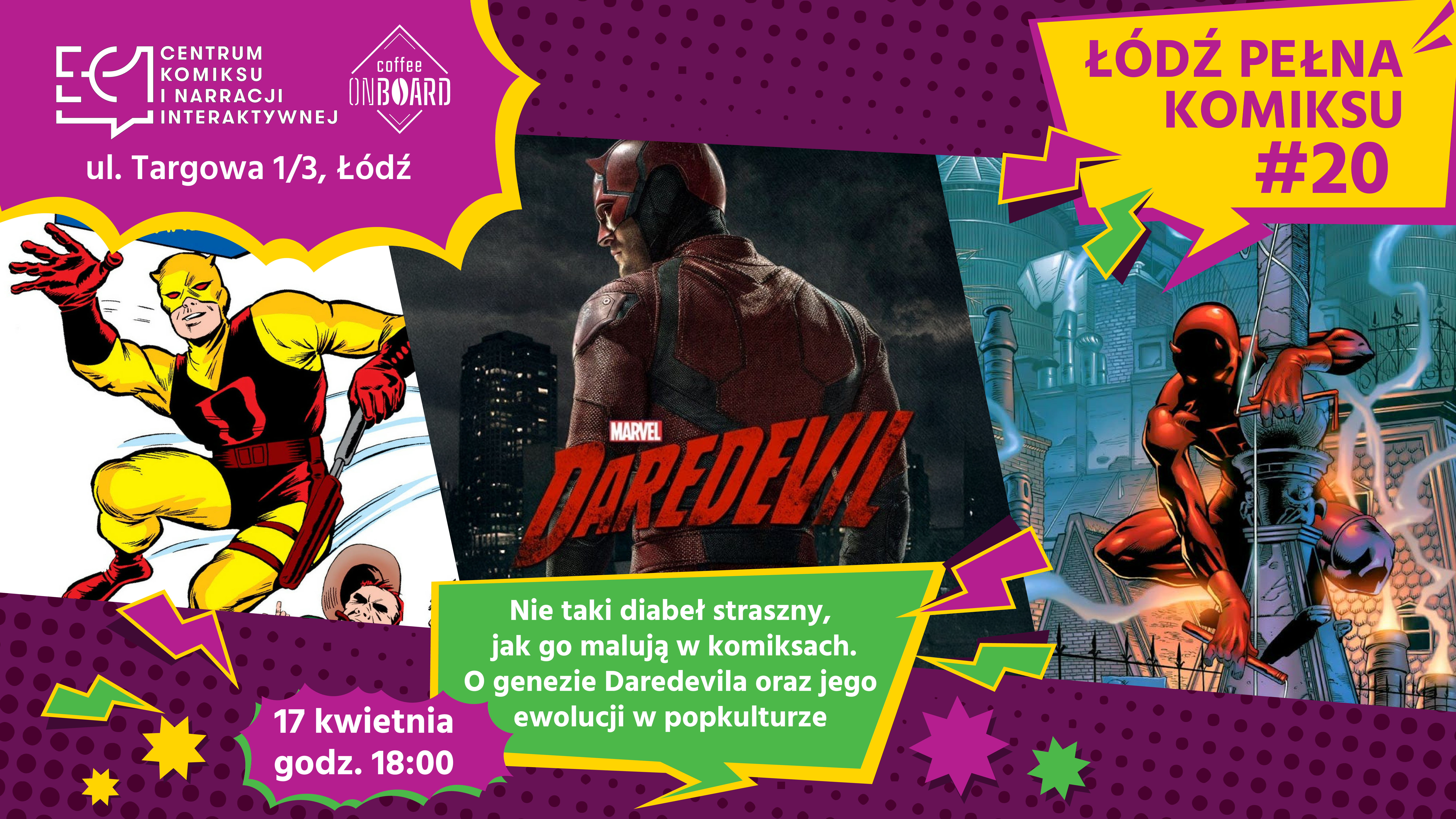 Na kolejnym spotkaniu Łódź Pełna Komiksu zagłębimy się w uniwersum Daredevila – bohatera, który od 1964 roku nocami walczy z przestępczością na ulicach metropolii w kostiumie diabła.